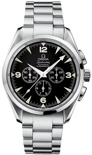 This polished, versatile watch from Omega is sporty and stylish. Water resistant to 500 feet, it is both durable and gorgeous. Its brushed, stainless steel band joins to a 42.2-millimeter-diameter case with a polished bezel. The black dial showcases easy-to-read luminescent hour hands and a handsome mix of Arabic-numeral and dash hour indicators as well as white stick minute markers. Three sub-dials add to the function of this Omega timepiece.